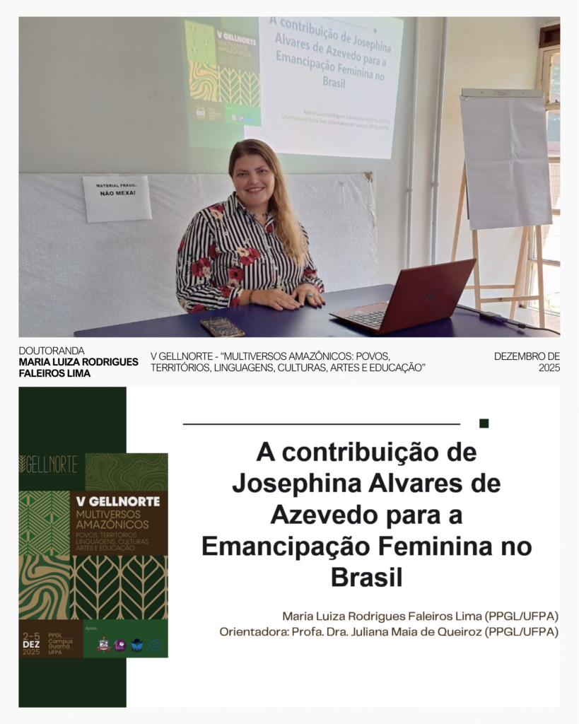Sob a orientação da Profª. Drª. Juliana Maia de Queiroz, os pesquisadores e pesquisadoras do GEMLIT, todos vinculados ao doutorado do PPGL/UFPA, apresentaram recortes de suas pesquisas, mostrando o compromisso do grupo com os estudos sobre as vozes femininas na literatura, as representações de gênero, a resistência, a memória e a emancipação das mulheres em diferentes contextos históricos e culturais.