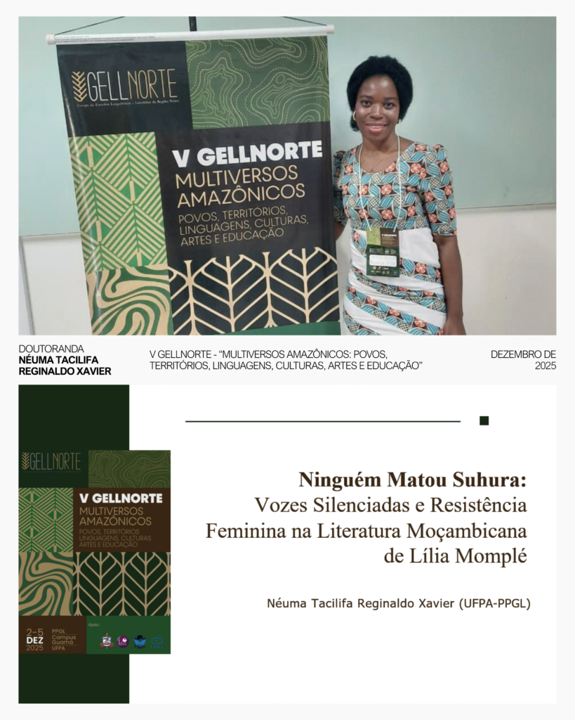 - Ninguém Matou Suhura: Vozes Silenciadas e Resistência Feminina na Literatura Moçambicana de Lília Momplé, por Néuma Tacilifa Reginaldo Xavier (UFPA–PPGL);