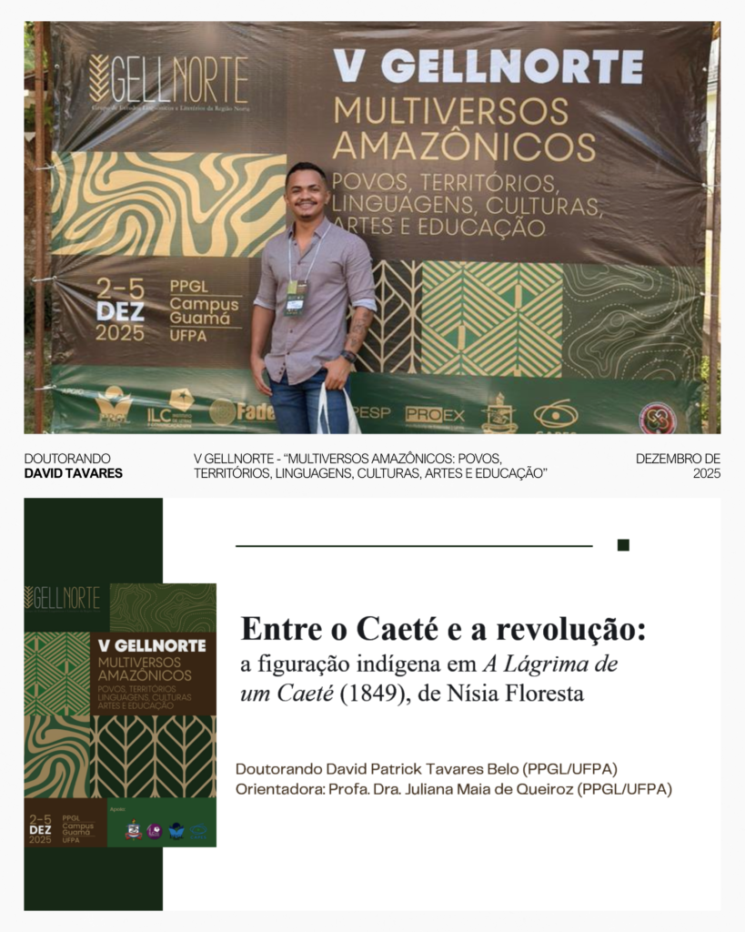 - Entre o Caeté e a revolução: a figuração indígena em A Lágrima de um Caeté (1849), de Nísia Floresta, por David Patrick Tavares Belo (UFPA-PPGL).